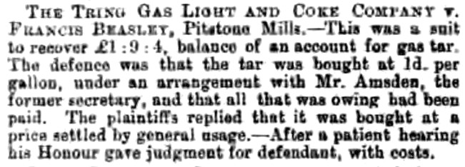 the Tring Gas Light & Coke Company.